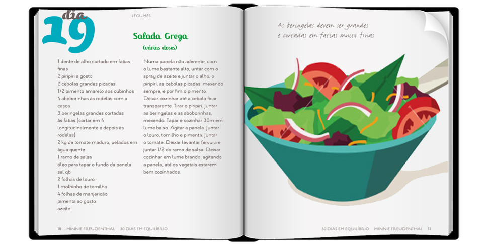 Somos aquilo que comemos e saber comer é uma arte. Assinada por uma reconhecida médica nutricionista mas grande apreciadora e conhecedora da gastronomia mundial, esta colecção low-cost propõe trinta receitas, uma por dia, para quem queira seguir uma alimentação equilibrada, saudável mas também muito criativa.